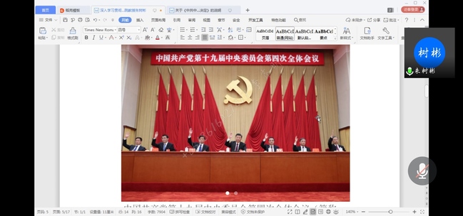 为深入学习党的十九届四中全会精神,贯彻习近平新时代中国特色社会主义思想,提高发展对象的思想政治素养以及理论水平,帮助发展对象坚定理想信念,树牢“四个意识”,增强“四个自信”。5月8日下午,我院邀请著名党政思想研究专家朱树彬为437bwin必赢国际官网发展对象培训班学员们上了一堂 “解读十九届四中全会精神”的专题党课。本次党课利用腾讯会议线上开展,由学院党委副书记叶华刚主持,发展对象培训班全体学员参加。