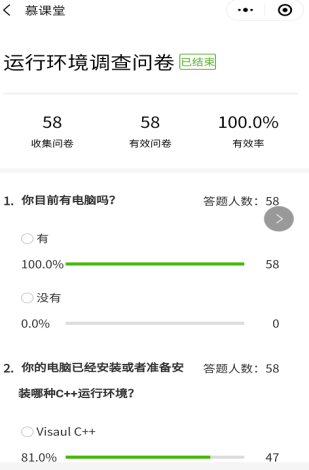 冯莉老师的课程均为计算机类课程,需要同学们上机操作,为了保证同学们能够及时的配备相关教学软件,冯莉老师在第一次试课期间就利用慕课堂开展相应的问卷调研,了解同学们的软件配备情况,并给予安装帮助。