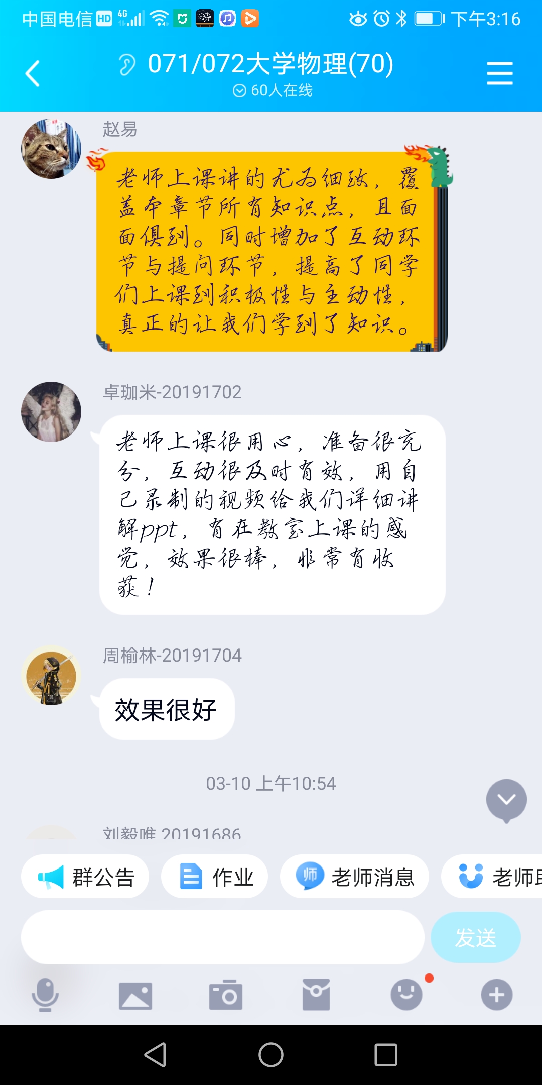 特殊时期“特殊”对待,曹海静老师在紧急情况下课程的录制存在很多不完美。但是提前录制课程不会让老师在上课的时候手忙脚乱,最大限度的节省了学生的时间,胸有成足地安排一节课的各个环节,受到学生的一致好评。即使是网课,仍然让学生感受到和面授课程没有任何区别,真正的实现学生是学习的主体。