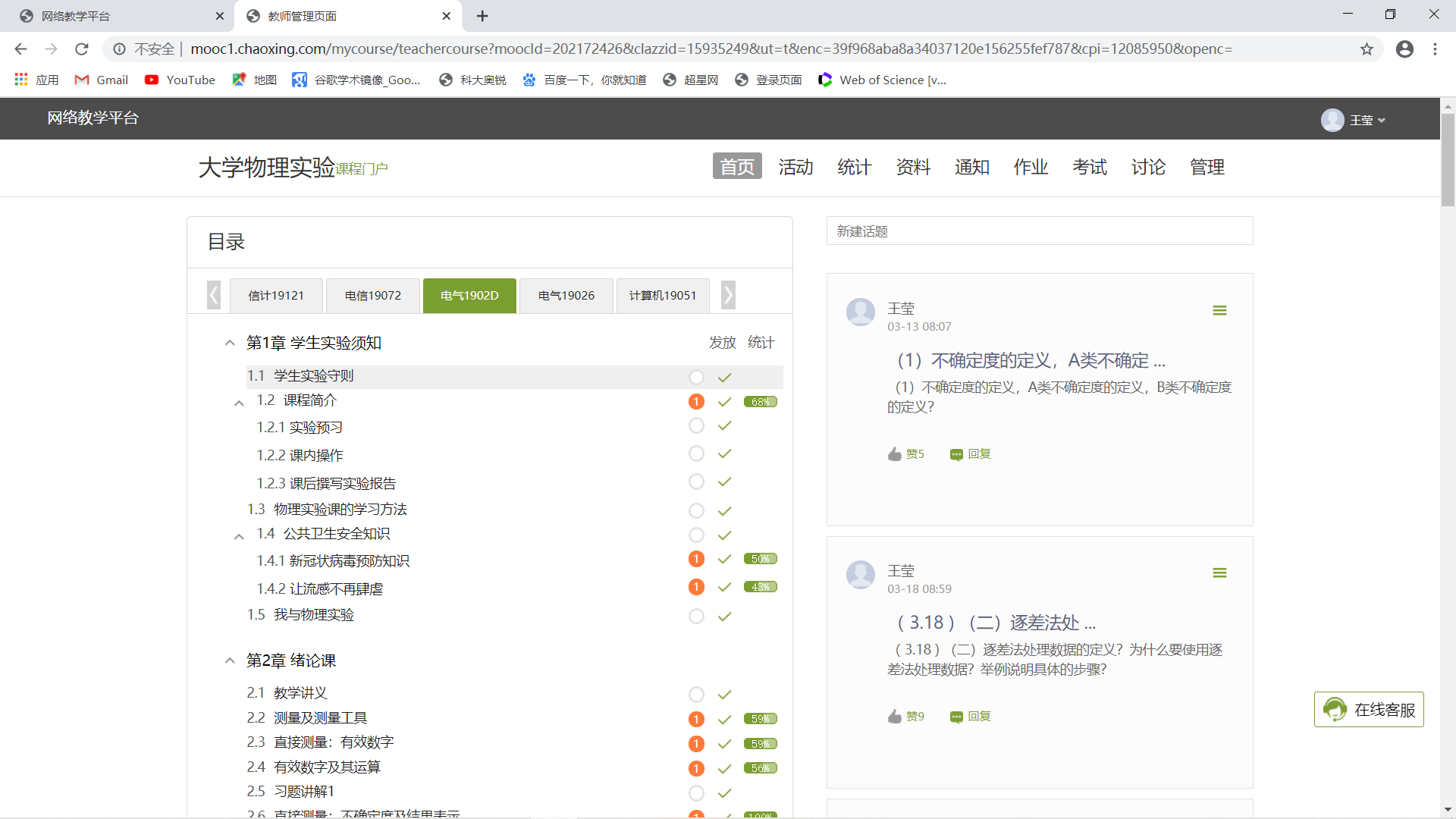 《大学物理实验课程》是理工科院校的一门重要的基础课程,课程内容对学生来说较难,需要很强的动手实践能力。鉴于实验课的特殊教育目的,通常需要在实验室里上课。在做好疫情防控工作的基础上,实验课程如何实现“停课不停教、停课不停学”? 如何引导学生通过线上授课的形式自主探索知识?如何把学生吸引回网上课堂,提高上课兴趣?这些是王莹老师网络教学经常思考的问题。