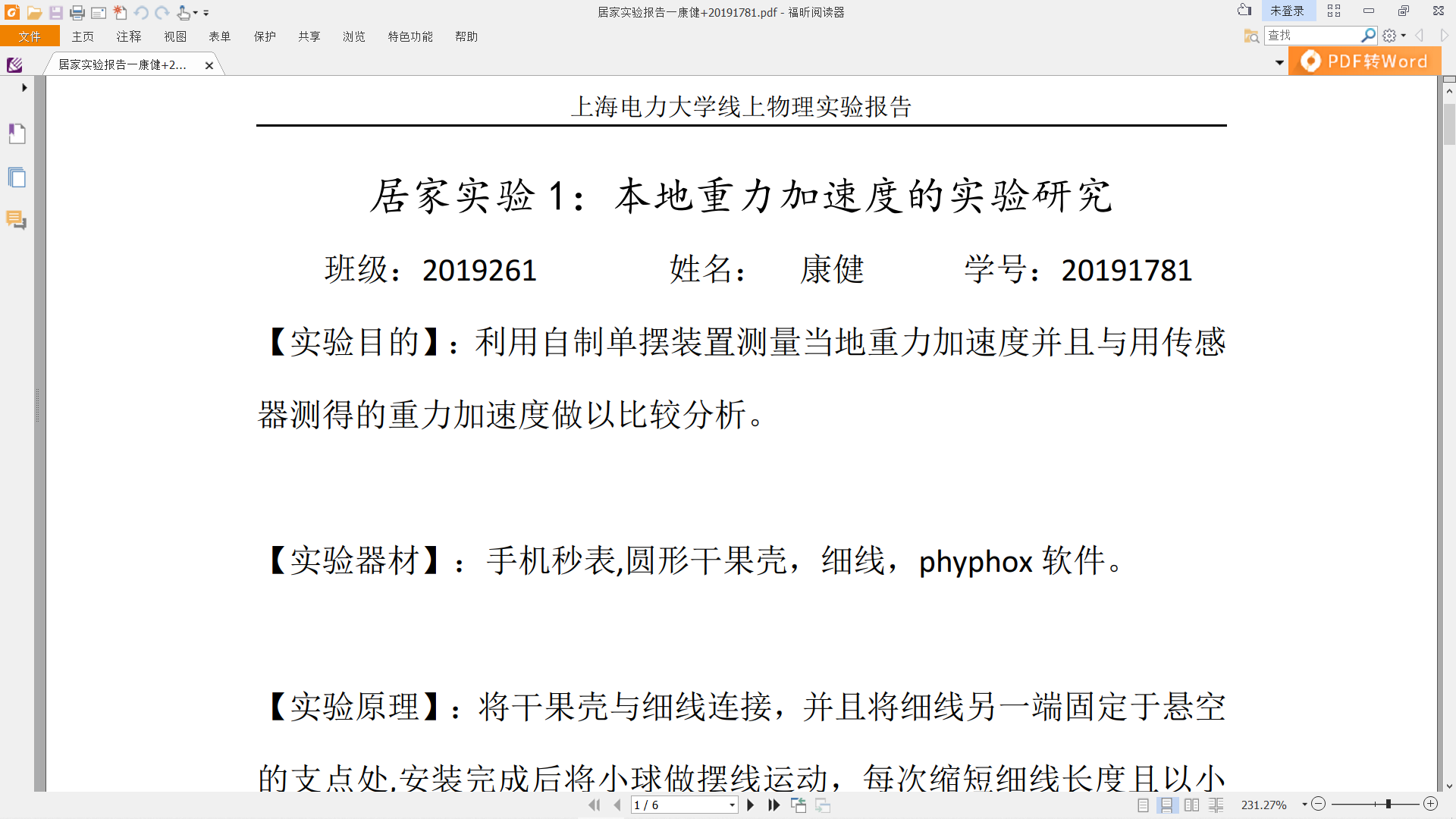居家实验装置和实验报告