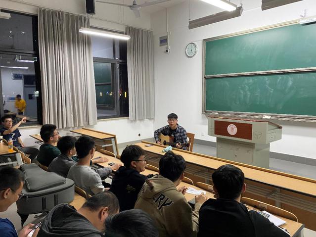篮球比赛后,同学们热情不减,大家在操场上围坐一起,畅谈研究生学习阶段的规划和学习科研心得,其中2020级新生任俊锋向大家讲述自己大学期间参军入伍的经历,使同学们对我国的国防事业有了进一步认识。随后同学们进行了“不要做挑战”,“你画我猜”等有趣的小游戏,欢声笑语充满了临港校区的操场,同学们在欢乐的气氛中增进了对彼此的了解。