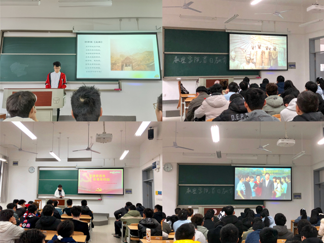 “迎建党百年,彰青年初心”党史学习宣传教育分为两个主题,一是党史微视频分享主题教育班会,辅导员以本年级专业为单位在首日教育活动期间组织党史微视频分享主题班会。短视频传播形式目前已成为新的“流量”聚集地,传播主体亲和,更能迎合学生的心理需求。本次党史微视频分享主题教育班会借助短视频这一媒介,激发学生的爱党爱国热情,帮助青年学生从历史中汲取奋勇前进的精神力量,引导学生坚定不移跟党走,勇做新时代奋斗者。各年级学生精心准备,在主题班会上分享视频和建党100周年之际所思所感,同学们对党有了更深的认识,并深刻体会到如今的幸福生活来之不易。二是迎接建党100周年诗歌朗诵活动,同学们以丰富多彩的形式朗诵了《七律•长征》、《七月》、《建党百年新征程》等篇目,讴歌中华民族实现伟大复兴的奋斗历程,颂扬中国共产党的丰功伟绩,在悦耳的诵读声中进一步坚定了“四个自信”。