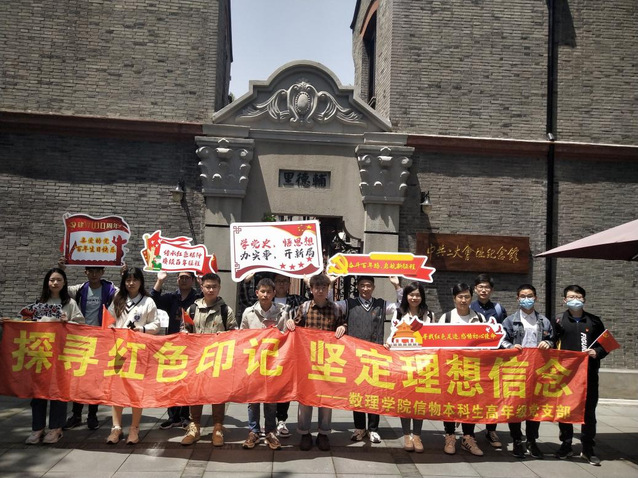 今年是中国共产党建党一百周年,从1921年成立以来,党已经走过了一百年艰辛而辉煌的风雨历程。4月29日上午,437bwin必赢国际官网党委开展了主题为“不忘初心,走向未来”的红色基地打卡活动,迎着革命先辈的足迹,依次前往中共一大会址纪念馆、中国劳动组合书记部旧址陈列馆、中共二大会址纪念馆和闸北革命史料陈列馆,437bwin必赢国际官网党委书记徐广新,党委专职组织员兼信物本科生高年级党支部书记吕莹和支部其他党员、2020级物理学研究生团支部成员参与了本次活动。