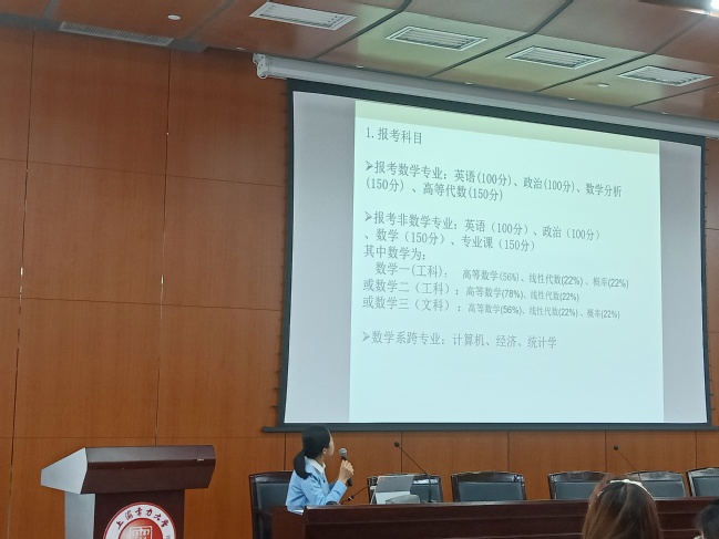 动员会上,曹海静老师从考研目标、初试复试备考及注意事项三个方面对同学们进行指导,强调复习考研的同时也不能落下正常的专业课程学习。她通过实际案例总结了考研过程中坚持“信念、勤奋、执着”三个词,引导大家坚信“我命由我不由天”,希望正值青春年华的同学们脚踏实地努力前行,成为掌握未来的人。李丽花老师向大家介绍了历年信息与计算科学专业考研情况,指导大家动态关注目标院校的信息,并鼓励大家在考研途中应保持积极向上的心态。