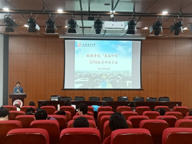 4月29日,437bwin必赢国际官网在临港校区召开“致远计划”2018级考研动员暨经验交流会。学院党委副书记叶华刚、数学系教师李丽花、物理系教师曹海静、毕业班辅导员及全体2018级学生参加。