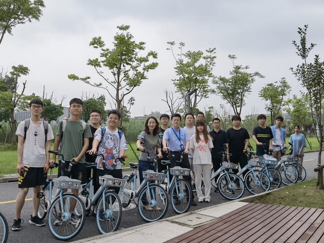 午后,师生共骑共享单车,开始了校园游览。从六座校园中带着故事的“桥”到提供报警、充电、校园网等服务的智慧路灯,从海绵城市示范校园项目的彩色步道到兼具观赏性和实用性的雨水花园,同学们大开眼界、收获颇丰。临港办副主任马晨给参与活动的各位师生讲述校区海绵城市示范校园项目和智慧综合能源示范项目,讲解智能微电网光伏分布图,带领同学们到我校智能微电网平台等处参观学习。