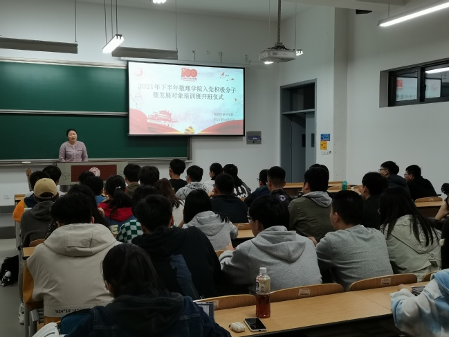 在开班仪式上,院党委副书记赵月琴发表讲话,她对在座入党积极分子和发展对象们表示充分的肯定并给予鼓励,针对此次会议,她就百年辉煌的四个历史时期和伟大建党精神两个方面进行了讲解,同时给学员们提出几点要求与期望。她指出,同学们要珍惜此次党课学习机会,思考自己的入党动机,在学习过程中不仅要加强对党史的学习,更要从党的发展历程中学习党的精神和经验教训,注重学习方式、方法的创新,用党的理论知识武装头脑;在工作中,要切实加强组织领导,树立正确的党史观,践行全心全意为人民服务的宗旨;在生活中,要不断传承和弘扬伟大建党精神,要充满奋斗精神,不忘初心,发奋图强,将伟大的建党精神发扬光大。