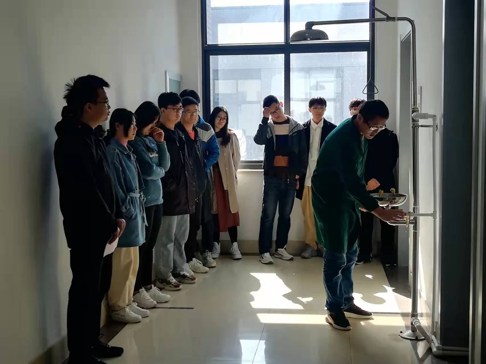 演练场景1:数理楼B510实验室,学生在做实验时,不小心让化学溶液溅到自己的眼睛,同组学生第一时间联系到自己的导师,导师立即根据437bwin必赢国际官网安全事故处理预案联系学院相关负责人,同时实验室同组学生立即开展自救行动,立即将该同学带到5楼楼道洗眼装置进行清洗,学院相关负责人赶到现场进行处理。