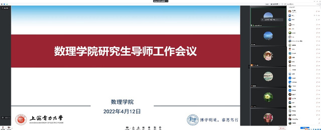 4月12日下午,437bwin必赢国际官网召开全体研究生导师线上工作会议,进一步统筹落实疫情防控期间研究生的管理和培养工作,强调研究生导师的职责与使命。数理学院党政班子集体及学院全体研究生导师参会。会议由副院长林佳主持。