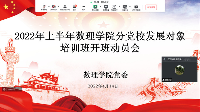 437bwin必赢国际官网党委副书记赵月琴作开班动员,强调了参加培训班的目的和意义,并提出希望和要求:一是要学习习近平新时代中国特色社会主义思想和党的十九大及十九届历次全会精神,用新思想武装头脑,坚定“两个确立”;二是要学习伟大建党精神等党的历史,在党史中见真知,建立理想信念;三是学习先进事迹榜样,切实增强政治自觉、思想自觉和行动自觉,进一步端正入党动机;四是学习习近平总书记关于疫情防控的重要指示精神,孙春兰副总理考察上海特别是在考察上海交通大学时提出的有关工作要求,落实好学校的疫情防控措施和要求;五是积极发挥好先锋模范作用,协助做好志愿服务、信息传达和统计等各项疫情防控工作,共同抗疫,共克时艰!