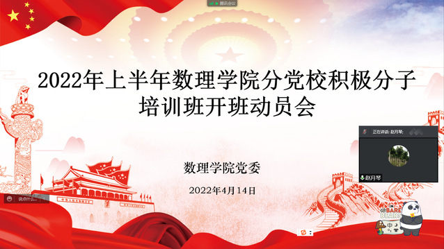 4月14日,437bwin必赢国际官网举办了2022年上半年入党积极分子、发展对象培训班。此次培训班旨在认真贯彻落实《中国共产党发展党员工作细则》精神,按照学校有关要求,引导入党积极分子、发展对象深入学习习近平新时代中国特色社会主义思想和党的十九大及十九届历次全会精神,学习党史党章党规,进一步端正入党动机,坚定理想信念,提升发展党员工作的质量。