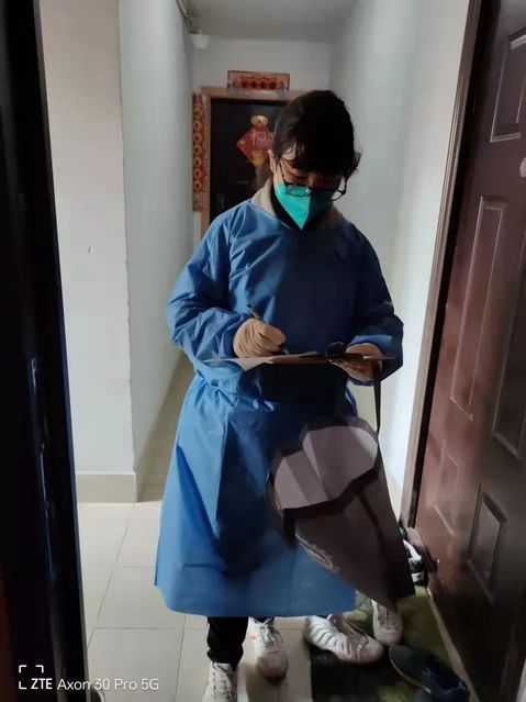 张老师的工作是挨家挨户的为居民们送去抗原检测试剂、物资、备用药品等。从东到西、从前到后,一栋又一栋的居民楼里都有张老师忙碌的身影。张老师不停地为居民们讲解抗原检测使用方法和注意事项,并为邻居们解答各种防疫工作上的疑问。志愿工作辛苦又繁琐,除去身体上的疲累,还有作为母亲对家中孩子的牵挂,她坚信孩子会理解她,也会为自己妈妈的所作所为感到骄傲!张老师提到志愿工作时笑着说“每天的任务完成后,两条腿就像两根面条一样,但是能为邻居们做点什么,觉得自己这一天都很有意义。”这样辛苦的志愿工作,张老师已经连着做了七天,张老师每天就像一名“快递员”,每天在居民楼里穿梭,坚持“送货上门”。一来二往,张老师成了广大邻居们眼中的“熟面孔”,对于张老师所做的一切,大家也都感激在心,她“舍小为大”的精神感动着社区居民。