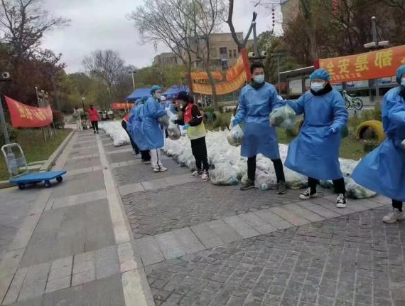 林佳老师的爱人刘晓霖老师,把家里小孩安顿好后,第一时间到社区报到,成为了一名社区防疫志愿者,负责小区抗疫物资的管理和发放,每轮核酸检测都主动积极的跑在最前面,全力协助检测人员的各项工作。其中物资派发工作辛苦又繁琐,为了保障每家每户都能收到政府发放的生活物资,她从早忙到晚,往往结束工作后才想起自己一天水米未进。“家人闲坐,灯火可亲;新岁伊始,喜乐安宁。”相信很多人的新年愿望应该都是这样的,可是自从新年以来,疫情就不断影响着人们的生活。刘老师提到做志愿者的初衷时说道:“我们每个人都希望疫情可以尽快过去,都希望尽早看到国泰民安的祥和景象。同时我们也懂得现在这样的时期更需要我们每个人像螺丝钉一样,随时准备党的召唤,随时去完成我们这一代人的使命。虽然在小区做一名物资派发的志愿者只是一件小事,但每个人把这件小事做好了,那就是干成了一件社区的大事。社区的大事又垒起了镇、区、市的大事,最终这场疫情阻击战一定会打赢的。”